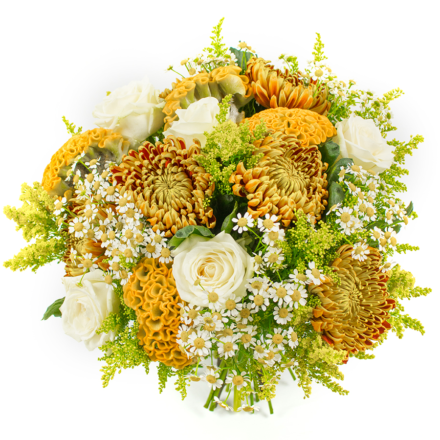 Our Autumn Splendor bouquet brings a touch of seasonal magic to any space with its rich blend of roses, chrysanthemums, chamomile, and vibrant greenery. Each flower is carefully chosen to ensure maximum freshness and beauty.